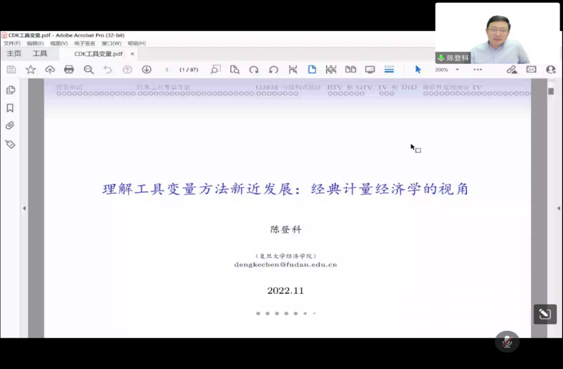 11月10号晚,welcome光临必发集团“财税青年讲坛”邀请复旦大学经济学院研究员陈登科博士作了题为《理解工具变量方法新近发展:经典计量经济学的视角》的线上学术报告。本次讲坛由学院院长余泳泽教授主持,我院部分师生、一些兄弟院校的老师等140余人参加。