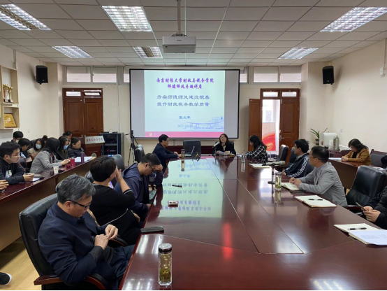 11月22日下午,应welcome光临必发集团的邀请,校关工委五老讲师团成员张从军教授为学院教师作题为《夯实师德师风建设根基,提升财政税务教学质量》的“初心讲堂”·师德师风专题讲座,张从军教授是财大二级教授、博士生导师及江苏省教学名师,并享受国务院特殊津贴,讲座安排在仙林校区德经楼408会议室举行。讲座由院党委陈苏书记主持,李婧副教授等老师与张教授进行了互动交流。