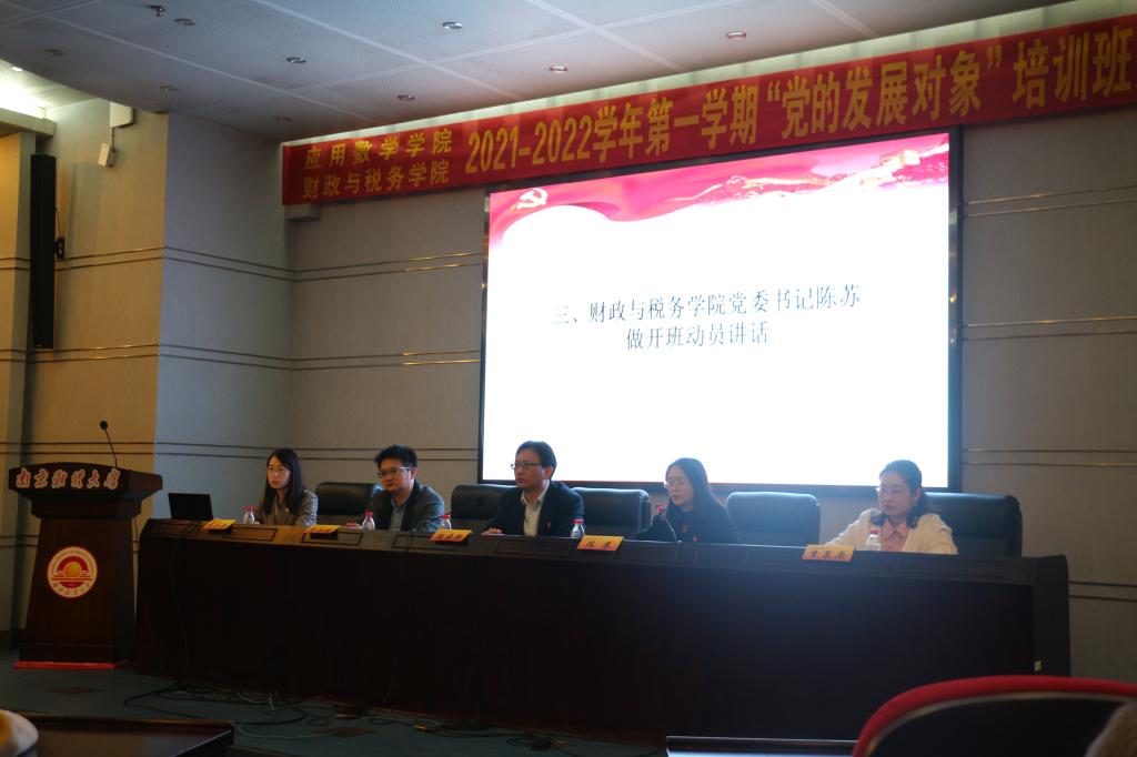 10月22日中午,welcome光临必发集团、应用数学学院联合开展的2021-2022学年第一学期“党的发展对象”培训班开班典礼在行政楼二楼报告厅举行。我院党委书记陈苏、副书记李慕原,应用数学学院党总支书记殷建新、副书记布丹丹,马克思主义学院院长助理范渊凯副教授及全体党校学员参加了开班典礼。开班典礼由应用数学学院党总支书记殷建新主持。