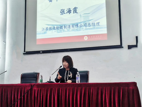 此次党课还邀请了江苏张弛轮毂制造有限公司总经理,我校财税学院2006届优秀校友张海霞,分享了自己创新创业的经历。她从自己上大学开始的创业经历谈到企业家的社会责任,鼓励学弟学妹们要敢为人先,永远葆有创新的热情,要多读书才能发现更多机会,面对事业必须要有态度和责任心,并鼓励大家要敢于面对困难,学会适应改变,调整心态。并与对同学们的问题进行了认真详细的解答。