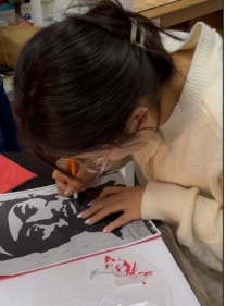 此外还有诸多学子们用多彩的方式呈现了历史长河中璀璨的青年形象小刀沿着线条划过阴影,勾勒出一副神情坚毅的面孔。税收2102宋子慧同学手持红色剪影,展示她亲手刻画的抗日英雄杨靖宇。“小时候常听爷爷奶奶为我讲述杨将军抗击日寇的英勇事迹,如今轮到我用剪纸的方式,向大家继续讲述这个故事。”财政2002班的冷思逸同学,将多部红色影视作品中的青年角色进行混剪,一幕幕镜头拼凑出了历史与今天的青年群像,配以她铿锵有力的旁白:“磨难造就中国青年挺立的脊梁,哪怕前路荆棘密布,刀光剑影,我们也有必胜的决心!”青年人的声音振聋发聩,警醒无数人勇敢接起时代的接力棒,担当民族复兴的伟大使命,为实现“中国梦”不懈拼搏。