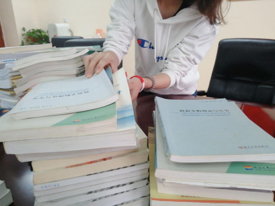 “这些书都是往届的学长学姐捐赠的,志愿者们将流转书籍进行分类整理,有借书意愿的同学可以通过短信联系志愿者借阅登记,借阅成功后到我院学生会联系志愿者领取心仪的书籍。”财政1801班曾丽娟同学谈到参与活动组织时的感悟时谈到。