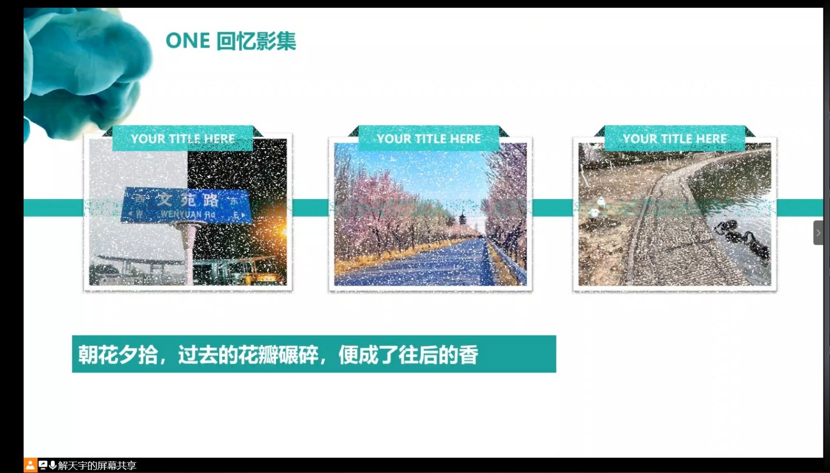 活动分模块进行,在“回忆影集”环节中,无论是在图书馆前排队读书的样子,还是在辩论比赛辩手雄辩四方的场景,亦或是班级的集体合照,这些在PPT中放映的照片记录着大学生活的峥嵘岁月,都让同学们从中体会到了“光阴似箭,日月如梭”。