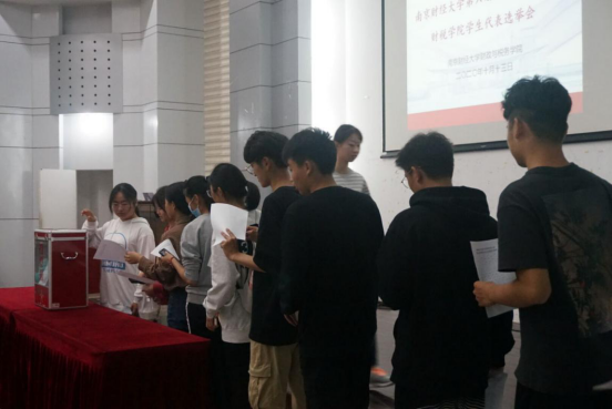 院学生会轮值主席曾丽娟同学发言,她向在场同学介绍了第六次学代会的前期筹备内容、学生代表的职责及我院学生会对此次学代会的推进情况。随后,由各班级推选的15名学生代表依次上台演讲,他们落落大方、充满自信,表达了自己渴望成为学生代表的激情和决心。随后学生代表依次投票,最终产生12名候选代表,他们将代表我院参与7790必发集团第六次学生代表大会。