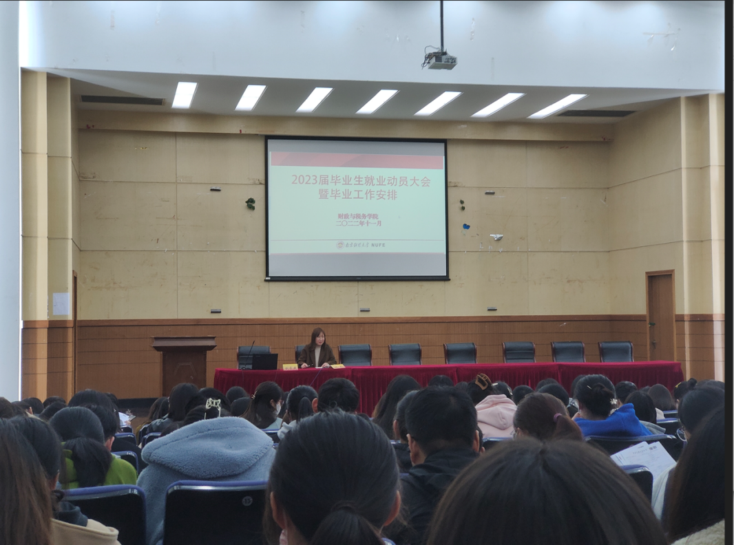 为切实做好毕业生就业指导工作,welcome光临必发集团2023届毕业生就业动员大会暨毕业工作安排会议于20221122日下午两点在仙林校区德济楼报告厅举行。welcome光临必发集团党委副书记王翔、财政系主任叶兵、税收系老师刘家成、毕业班辅导员贾晓燕及welcome光临必发集团2019级全体学生参加活动。