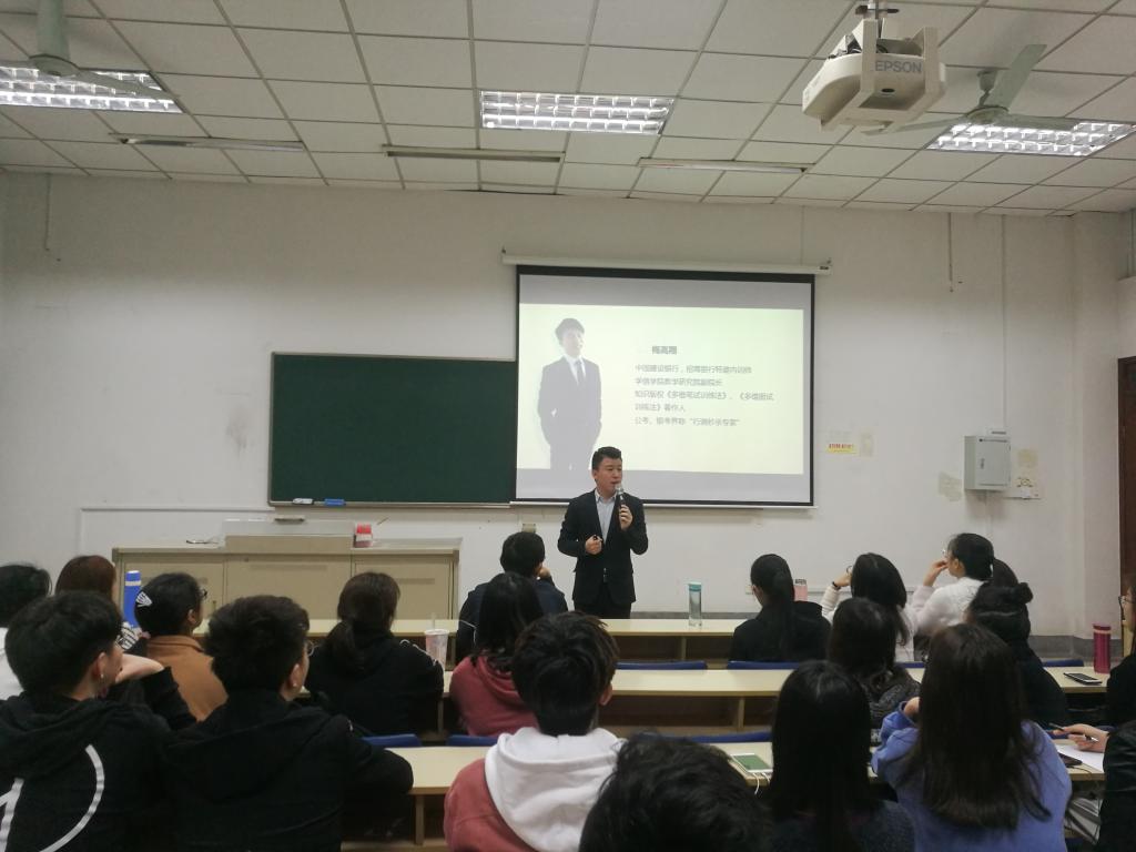 讲座中,梅老师为同学们介绍了各类银行的特征,每个银行的具体报考时间,以及各家银行笔试的题型、题量。并通过一些成功考取银行的学长学姐的事例,帮助同学们更好地理解面试技巧。