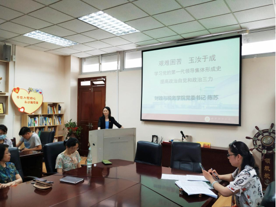 6月30日下午,我院党委书记陈苏在仙林校区德经楼408“支部之家”讲授“艰难困苦 玉汝于成 学习党的第一代领导集体形成史 提高政治自觉和政治三力”党史学习教育主题党课。我院各教师党支部、全体教职工和学生代表参加党课学习。