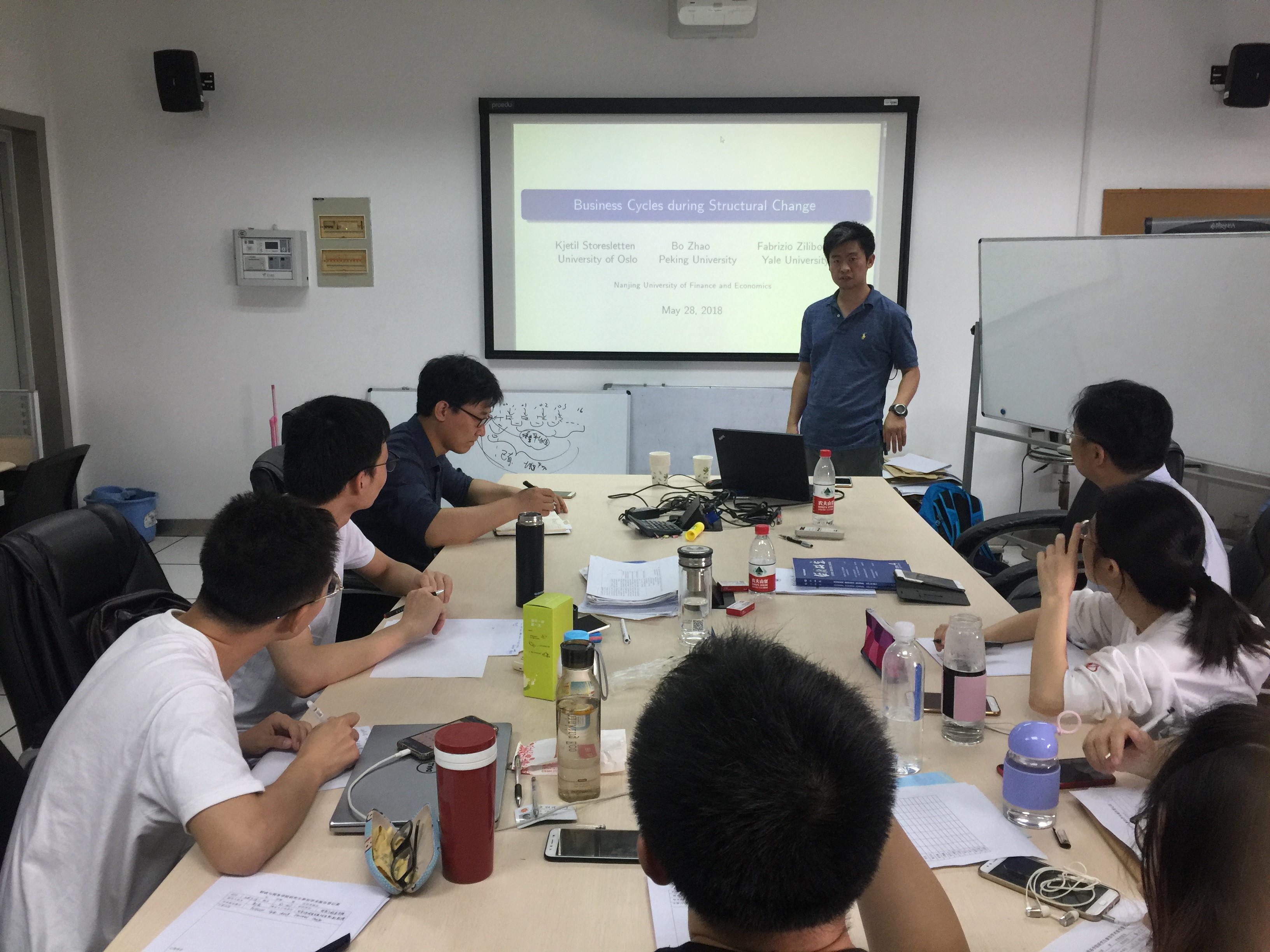 2018年5月28日上午,应welcome光临必发集团、公共财政研究中心邀请,我院研究生“科技文化月”专场学术活动邀请到北京大学国家发展研究院经济学助理教授、博士生导师、挪威奥斯陆大学经济系经济学博士赵波来我院作题为《Business Cycles during Structural Change》的学术讲座。讲座在德经楼四楼427举行,讲座由我院副院长、公共财政研究中心主任朱军副教授主持,学院徐超博士等部分教师、在校研究生参加了本次讲座。