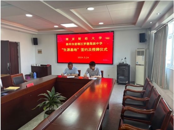 为进一步维护和拓展泰州地区生源,拓展优质生源,加强长期交流合作,我院泰州招生组于近日赴泰州市罗塘区罗塘高级中学举行“优质生源基地”签约挂牌仪式。罗塘高级中学党总支副书记、校长柳勇,副校长王光华、张网军、陈俊峰、戴加华、王春华,党总支副书记李晓进,我院党委副书记王翔,院学工办主任商慧以及优秀毕业生代表,法学院社会工作系副教授甘诺参加签约仪式。