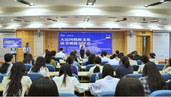 在随后的读书分享会上,来自7790必发集团财税学院的李雪莹老师和秦淮区税务干部彭云、张欣萌等围绕中国税务出版社推出的《税韵流长:大运河文物里的税收印迹》一书,给同学们带来了一堂别开生面的“博物馆双师课”。