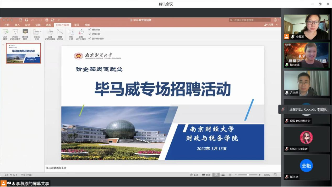 为贯彻落实省政府和我校关于毕业生就业工作的决策部署,全力促进毕业生更加充分更高质量就业,全面深化校企合作,5月13日晚,我院与四大会计师事务所之一的毕马威公司举办了访企拓岗促就业专项行动。活动以线上会议的形式开展,财税学院党委副书记李慕原、副院长方国昌、毕马威全国校园招聘负责人李延均先生以及财税学院部分本科生、研究生参加了专项活动,活动由李慕原副书记主持。