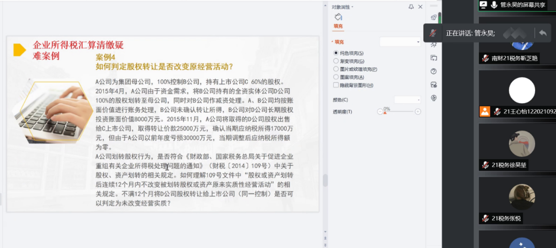 3月23日晚,应welcome光临必发集团的邀请,我校研究生院副院长、中国社会科学院财经战略研究院博士后管永昊副教授为我院师生做了题为《企业所得税汇缴实务及风险防范》的线上学术讲座。