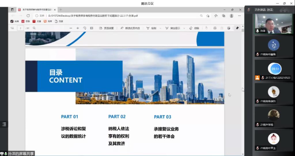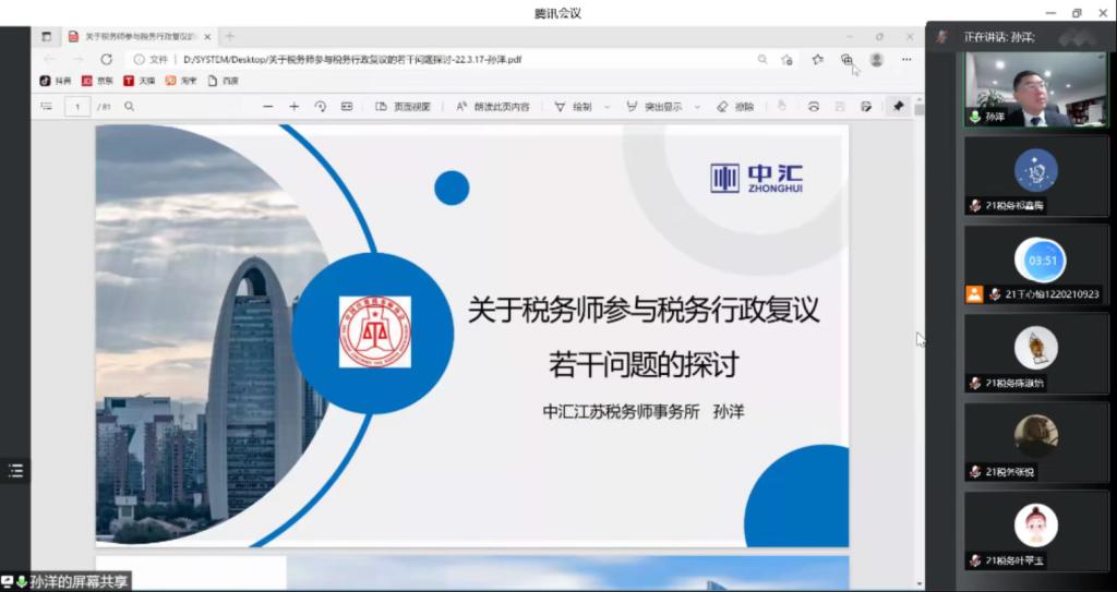 3月17日晚,应welcome光临必发集团的邀请,中汇江苏税务师事务所董事长、7790必发集团产业教授孙洋为我院师生做了题为《关于税务师参与税务行政复议若干问题的探讨》的线上学术讲座。