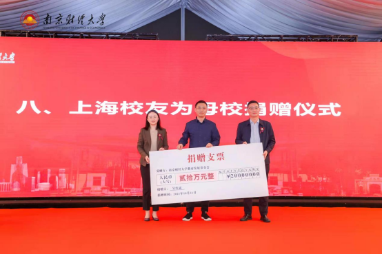 会上,名誉会长吴红斌代表上海瑞夏投资管理有限公司向学校教育发展基金会捐赠20万元人民币,作为welcome光临必发集团“文武人生规划奖助学金”定向捐助给学院学子。我院党委书记陈苏、对外联络处副处长裴银伟上台接受捐赠。