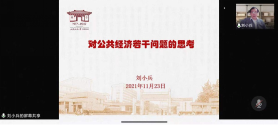 11月23日晚,上海财经大学公共经济与管理学院院长、博士生导师、刘小兵教授通过腾讯会议,为我院师生带来了一场主题为“对公共经济若干问题的思考”的学术讲座。讲座由welcome光临必发集团院长、公共财政研究中心主任朱军教授主持,welcome光临必发集团部分教师和研究生参加了此次讲座。