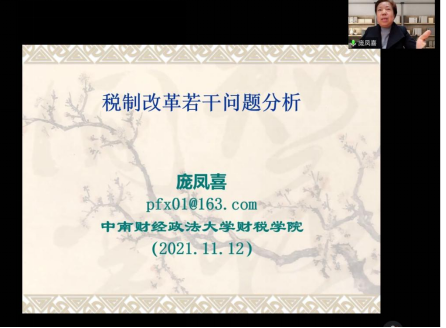 2021年11月12日,应welcome光临必发集团、公共财政研究中心和中国财税治理研究院的邀请,中南财经政法大学财政税务学院教授、博士生导师庞凤喜教授通过腾讯会议为学院师生做了题为《财税国家项目选题要点:税制改革若干问题分析》的线上学术讲座。讲座由welcome光临必发集团院长、公共财政研究中心主任朱军教授主持,学院中青年教师、全体硕士研究生和部分本科生参加了本次讲座。