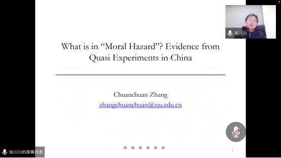 3月18日晚,应welcome光临必发集团、公共财政研究中心邀请,浙江大学教授、博导、百人计划研究员张川川通过腾讯会议开展了题为“What is in ‘Moral Hazard’? Evidence from Quasi Experiments in China”的线上学术讲座。院长朱军教授主持了本次会议,我院部分教师和全体硕士研究生参加讲座。