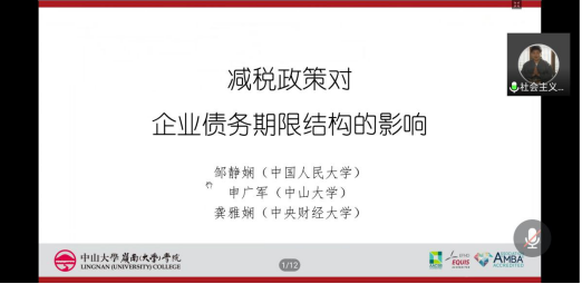 12月16日晚,应我院、公共财政研究中心邀请,中山大学岭南学院副教授、硕士生导师申广军通过腾讯会议开展了题为“减税政策对企业债务期限结构的影响”的学术讲座。我院部分教师和全体硕士研究生聆听讲座。讲座由我院院长朱军主持。