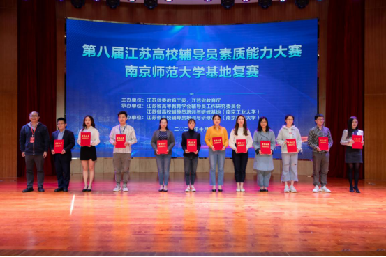 近日,由江苏省委教育工委、江苏省教育厅主办,江苏省高等教育学会辅导员工作研究委员会、江苏省高校辅导员培训与研修基地承办,江苏省高校辅导员培训与研修基地协办的第八届江苏高校辅导员素质能力大赛南京师范大学基地复赛在南京师范大学仙林校区举行。来自南京、扬州、镇江等多所高校的优秀辅导员参加此次比赛。我院李慕原老师经过校赛选拔获得一等奖,入围基地复赛,并最终荣获基地赛优秀奖。