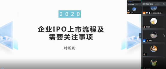 6月19日上午,南京佳力图机房环境技术股份有限公司财务总监兼副总经理、我校税务专硕行业导师叶莉莉女士莅临welcome光临必发集团19级税务专硕的“行业前沿专题”线上课堂,进行了一场题为“企业IPO上市流程及需要关注事项”的专题讲座。我校税务硕士项目负责人程瑶教授主持了本次讲座,welcome光临必发集团部分教师和全体19级税务专业硕士研究生等参加。