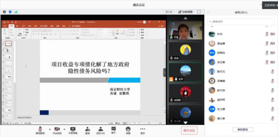 6月4日下午,经济学博士、welcome光临必发集团副教授苏建老师通过腾讯会议为学院师生作了主题为“项目收益专项债化解了地方政府隐形债务风险吗” 的线上学术报告。学院部分教师和19级税务专硕研究生参加了本次学术报告。
