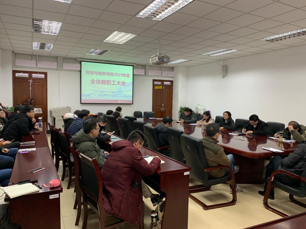 1月8日上午,我院在408会议室召开2019年度全体教职工大会,学院党政领导、教职工参加会议,会议由党委书记陈苏主持.
