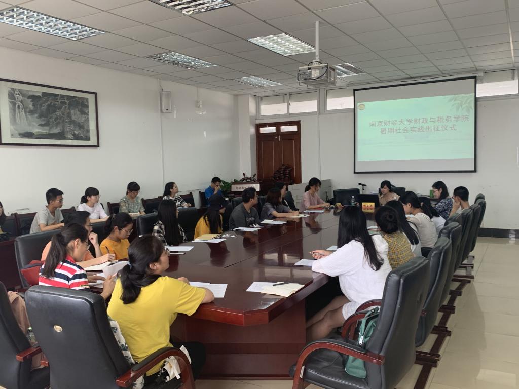 6月28日下午,我院2019年暑期社会实践活动出征仪式在德经楼四楼会议室举行。江苏广播电视总台记者明玉花、我院党委副书记李慕原、分团委书记全真真、各暑期立项团队队长及通讯员参加了此次出征仪式。