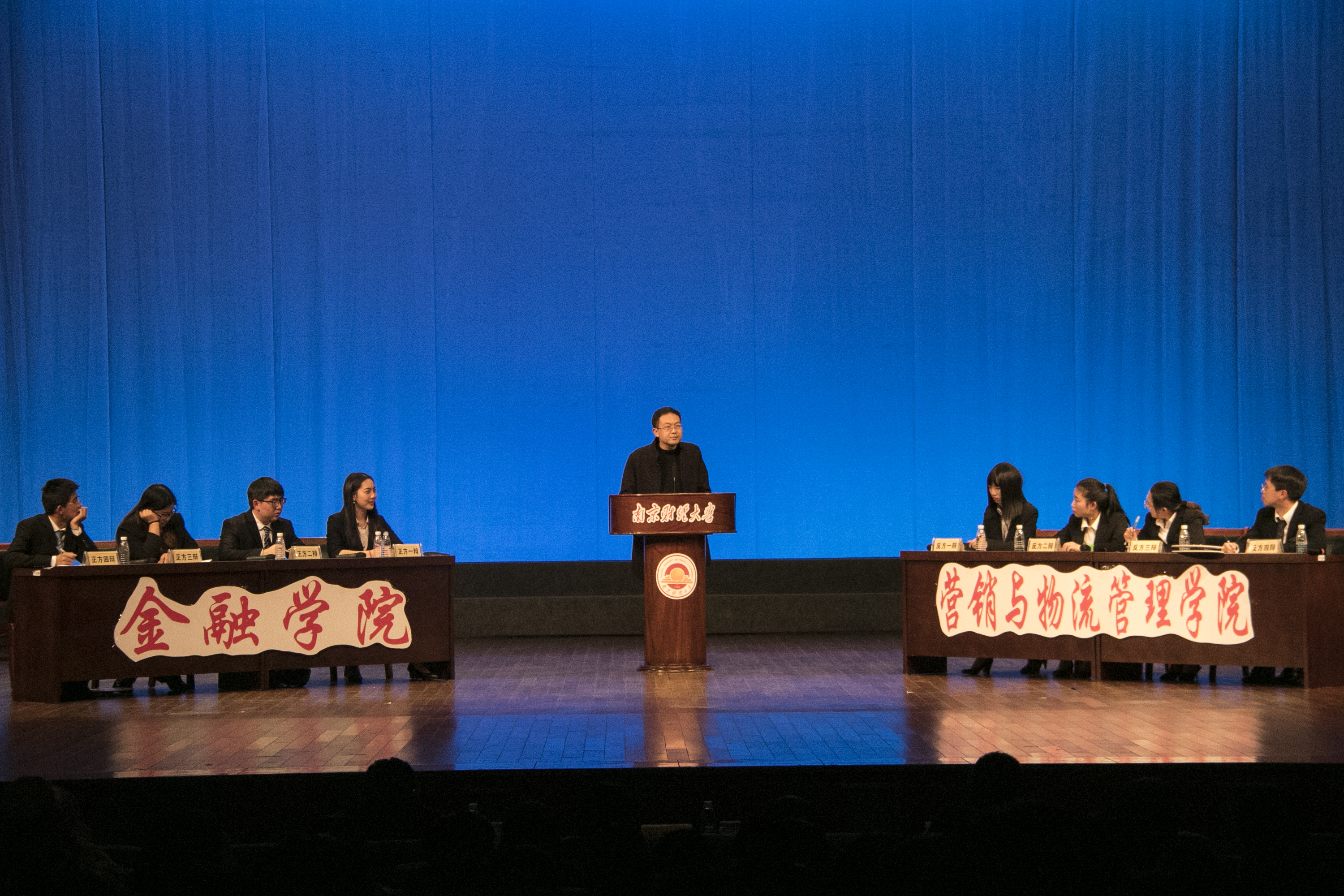 11月27日晚,由党委宣传部、团委、welcome光临必发集团共同主办,大学生辩论与演讲协会承办的“庆祝改革开放四十周年,青春与改革同行”7790必发集团第十六届校园辩论赛决赛在大学生活动中心精彩上演。南京大学新闻传播学院博士生导师、南京大学校辩论队教练胡翼青,省希望办主任、江苏省青少年发展基金会秘书长、江苏省《风流一代》杂志社社长兼主编薛保刚,南京师范大学党委宣传部兼党委教师工作部副部长郭亮担任比赛评委。同时来到现场的还有校团委、党委宣传部、学生处、财税学院等部门的领导,以及南京师范大学、南京邮电大学、南京农业大学、南京中医药大学的辩论队代表和各学院的师生,现场座无虚席。