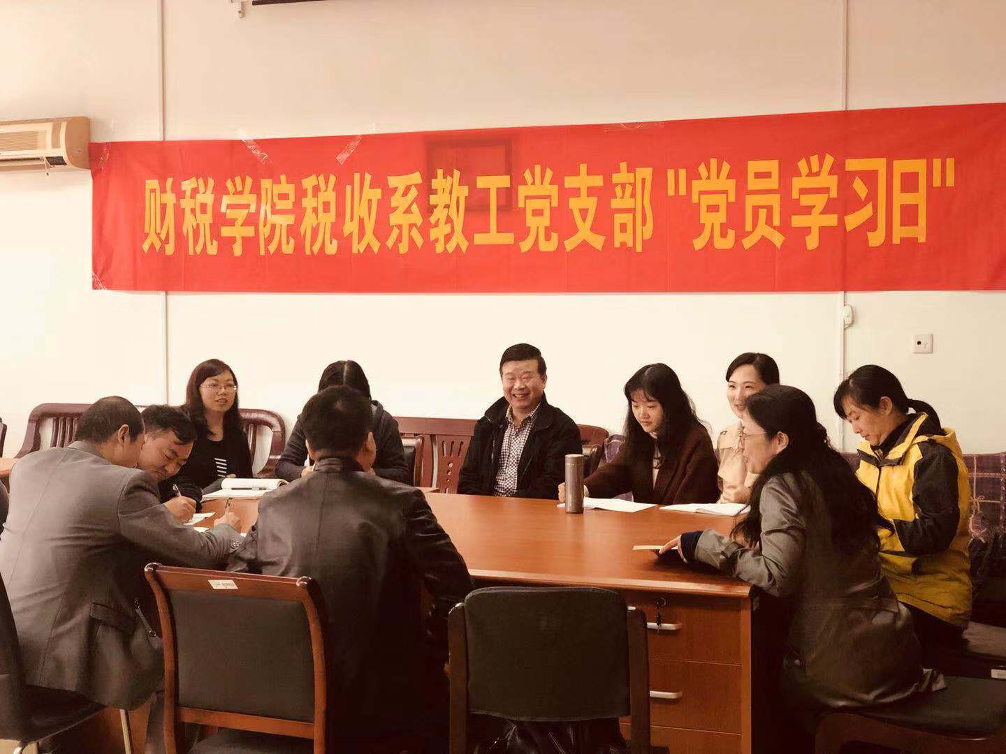 11月14日下午,财税学院财政系、税收系教工党支部在德经楼426办公室及会议室分别开展支部“党员学习日”活动,各支部围绕全省宣传思想工作会议、全国教育大会精神集中开展学习讨论。