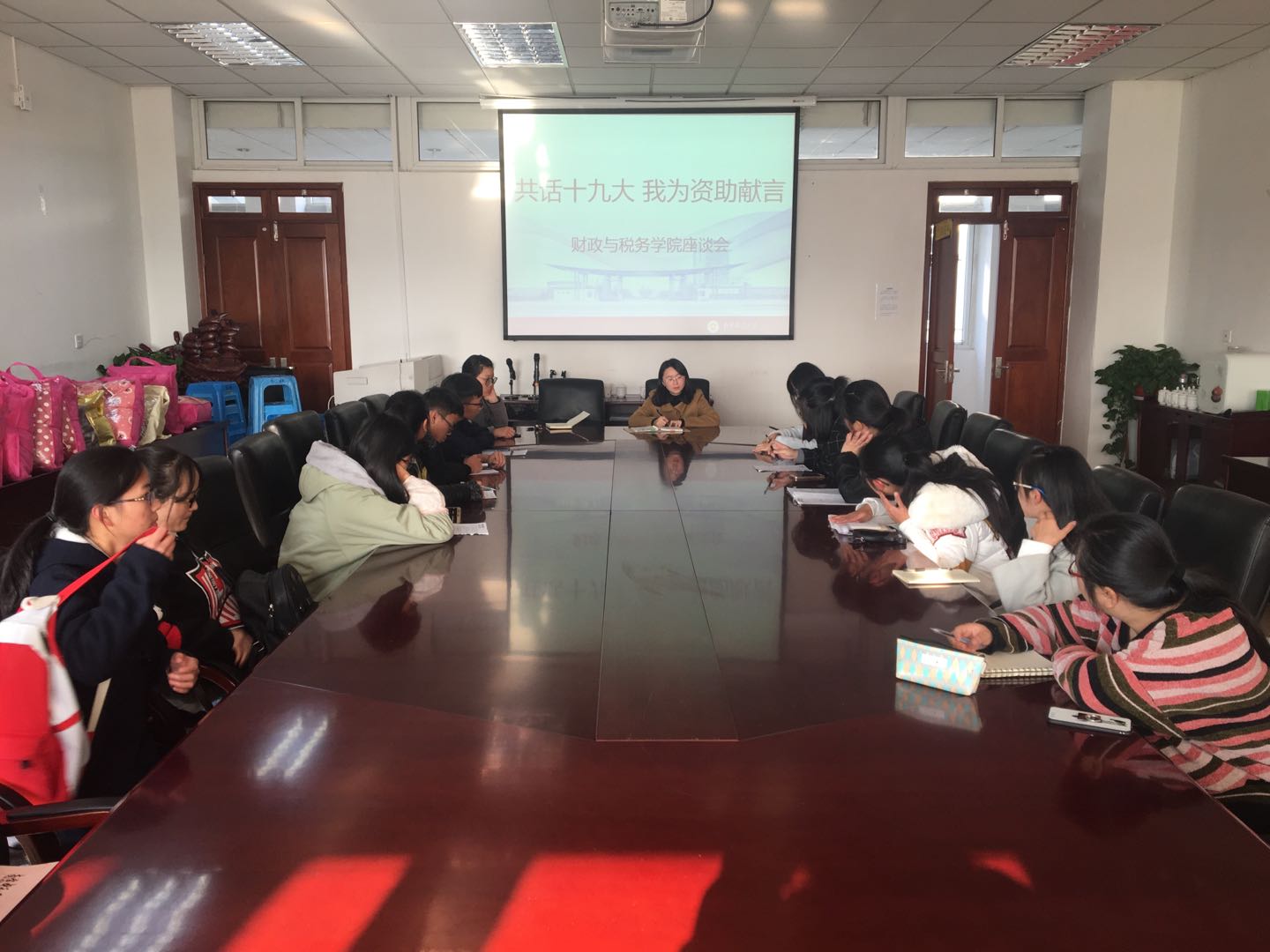 座谈会在轻松融洽的气氛中开始,学生代表畅所欲言,纷纷谈起学习十九大报告和系列讲话的体会,以及在学校、学院各类资助政策及活动中的获益和感受。同时,针对目前助学政策、困难认定等资助工作中存在的问题也提出了自己的看法,并积极献言献策。