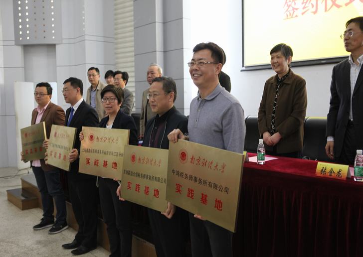 邱伟芬副校长、周苏明会长、夏永福副会长、welcome光临必发集团党委书记张金龙、院长李林木分别为江苏省注册税务师协会相关会员单位进行社会实践基地授牌。