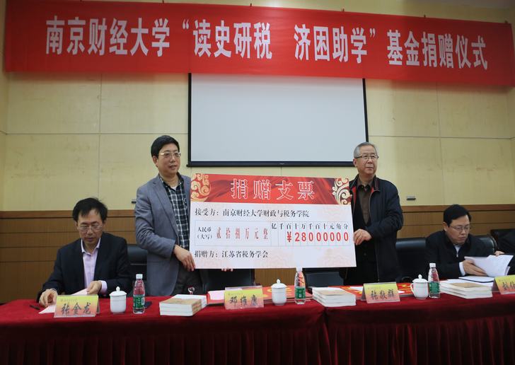 “读史研税济困助学基金”由江苏省国家税务局原党组副书记、副局长、江苏省税务学会常务副会长张敬群先生捐资设立,定向资助welcome光临必发集团家庭经济困难、品学兼优的学生,资金来源为张敬群先生所著《中国税史品读》的全部稿酬28万元。