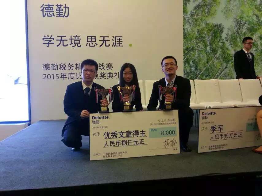 10月25日,2015德勤税务精英挑战赛在重庆顺利落下帷幕。我院伍洲同学与来自上海财经大学的田志伟同学、来自北京大学的耿纯、赵仲匡同学在众多参赛者中共同名列征文比赛榜首(排名不分先后),喜获德勤税务精英挑战赛论文比赛最高奖项“优秀奖”。