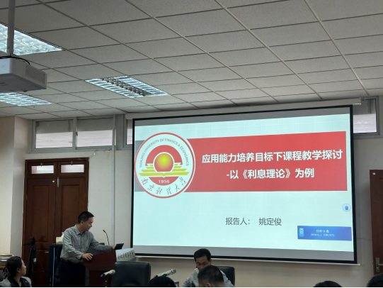 会议伊始,应welcome光临必发集团邀请,江苏省教学名师姚定俊教授以说课的形式为学院教师作了题为“应用能力培养目标下课程教学探讨—以《利息理论》为例”讲座,姚定俊教授是江苏省教学名师和江苏省“333工程”中青年学术带头人,金融学院副院长。姚教授以自己讲授的《利息理论》课程为例,从如何做好每学期课程的开场白、如何结合生活中的实际案例帮助学生理解课堂知识、如何利用形式多样的课堂互动调动学生的听课积极性、以及如何结合现实背景和课程具体知识点开展课程思政。期间,姚教授还向大家分享了自己在平时成绩评定、点名以及作业安排等方面的一些小技巧,整个讲座内容非常丰富,氛围也十分轻松。