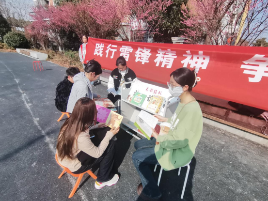 在第62个学雷锋纪念日来临之际,来自我院的“05后”大学生志愿者们携“流动读书箱”来到南京市栖霞区金尧花园社区以“耆读颐养,幼学助长”为主题开展“天使行动”,在爱心奉献中践行着“社区有我,青春报到”的志愿服务精神。